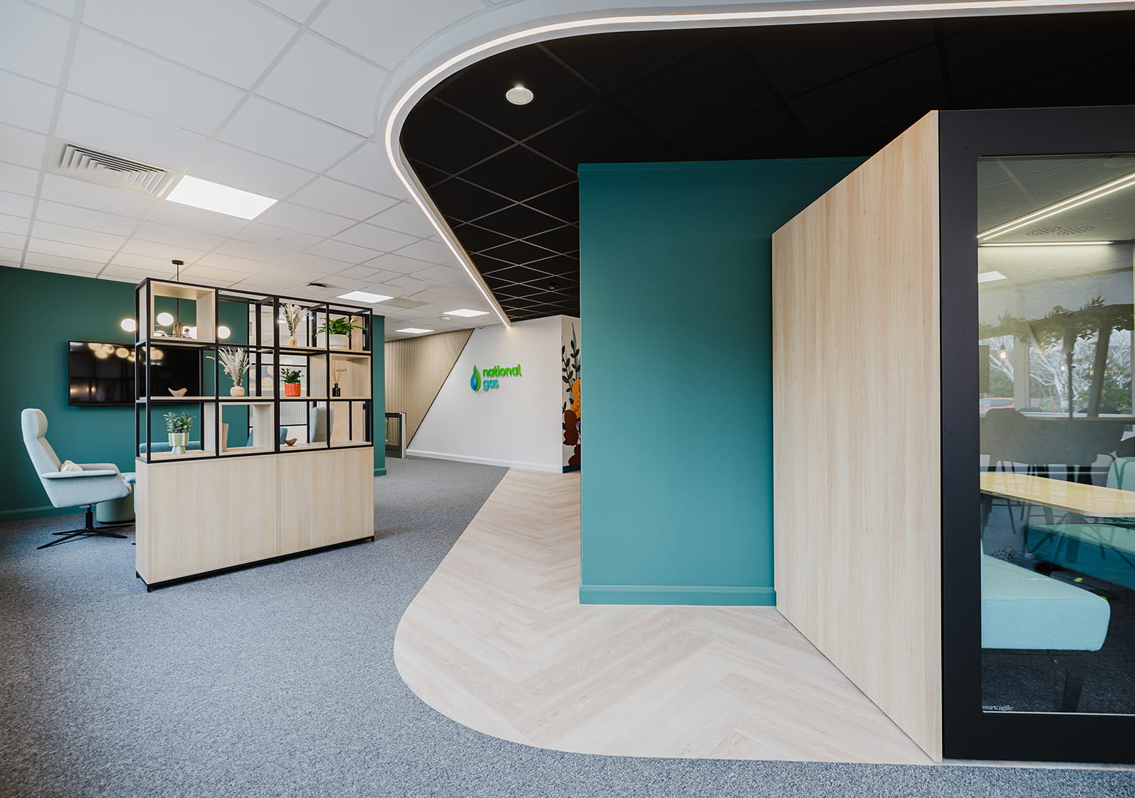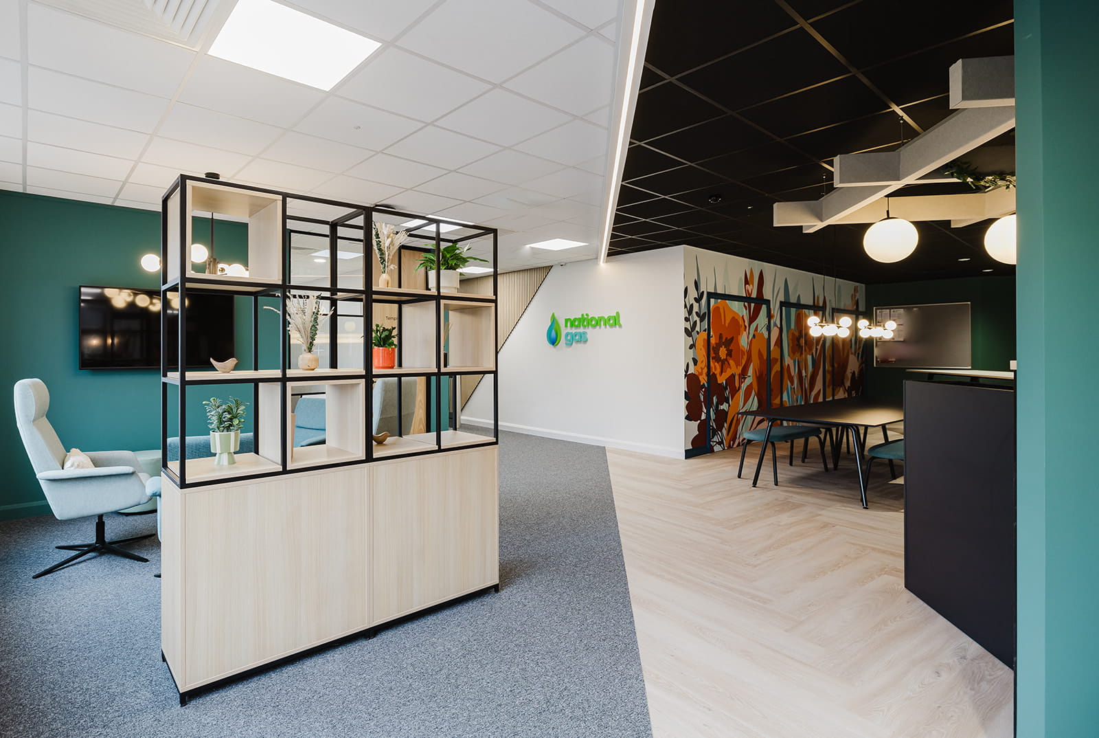 Carefully chosen materials and colour palettes bring warmth and character to the space while subtly reinforcing the National Gas brand. The resulting design language is strong enough to inform future workplaces across the organisation.